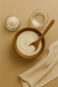 Instead of store-bought adhesives, a simple homemade glue keeps the process sustainable. A mix of flour and warm water creates a smooth, sticky base that is safe, effective, and environmentally conscious.